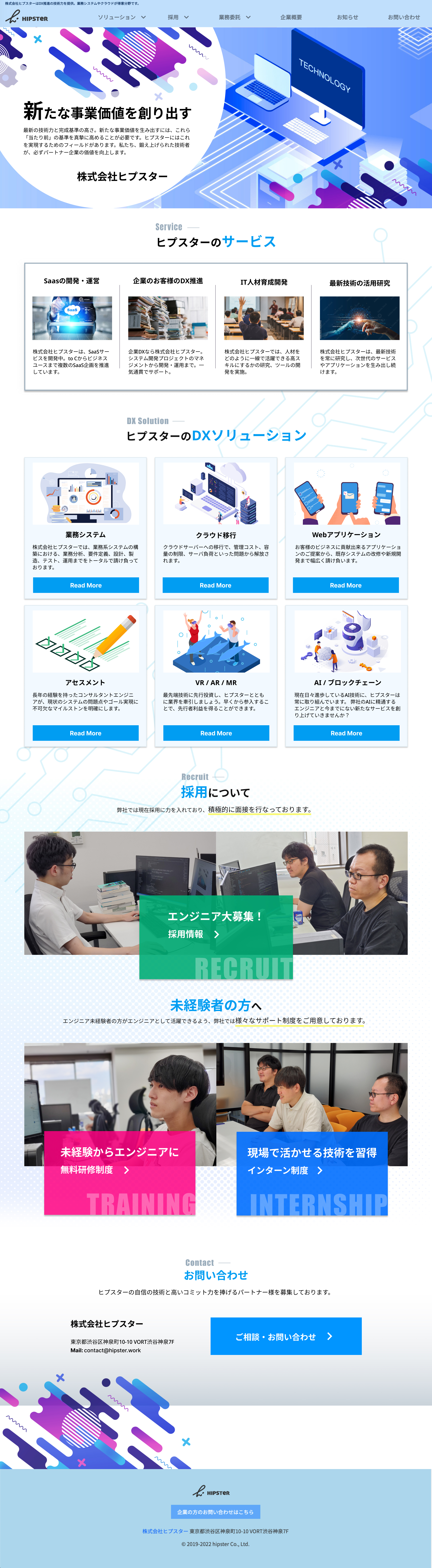 ヒプスター様の案件はページごと都度個別でのご依頼でしたので、どのページにも、サイトのどこからアクセスしても違和感のないよう統制を図ることを意識いたしました。