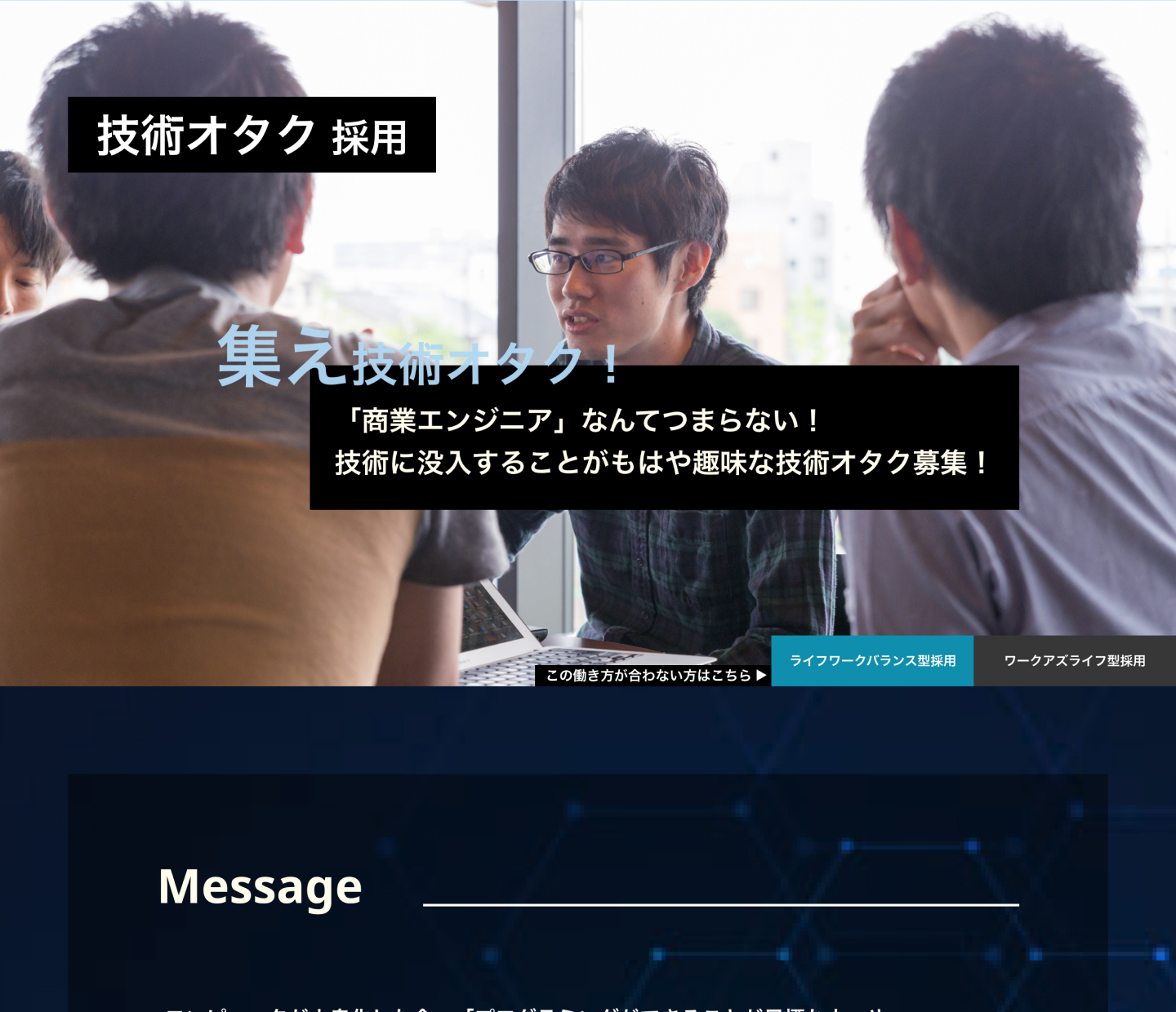 採用強化のため、採用メインのページを作りたいとのご要望でした。(全4ページ構成)