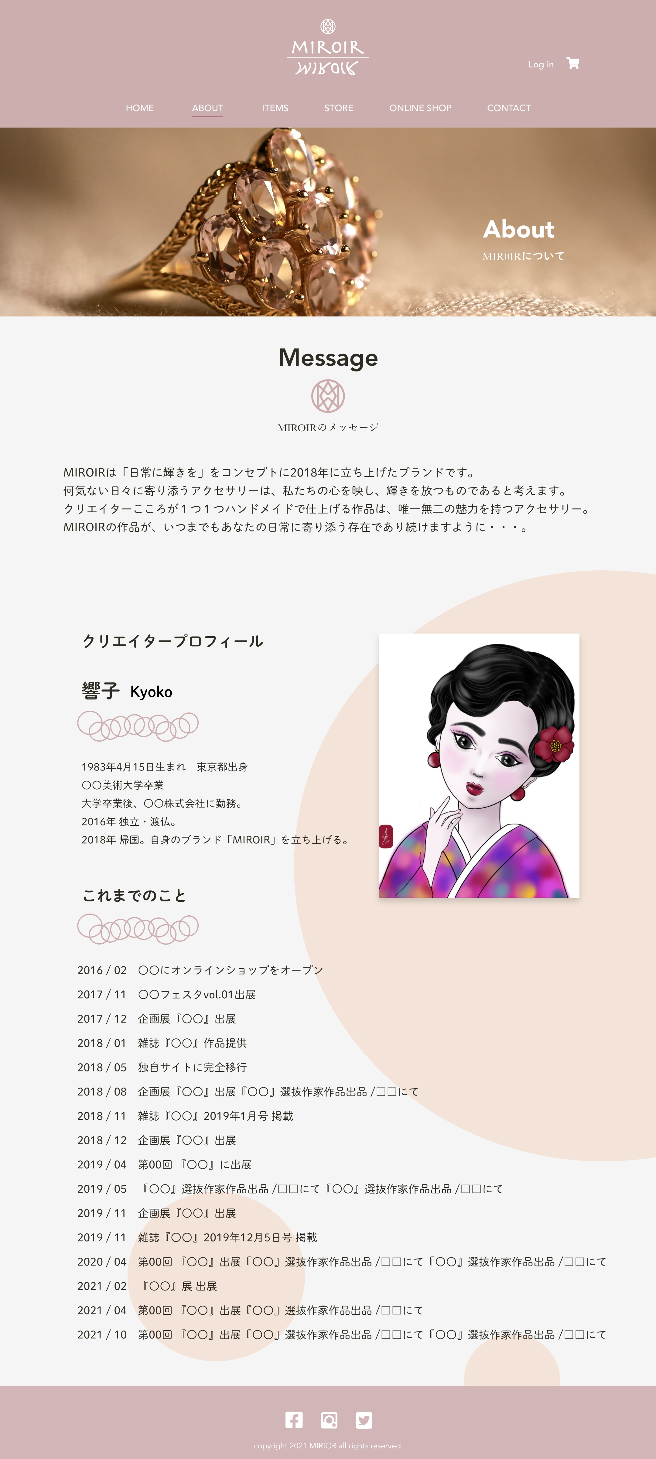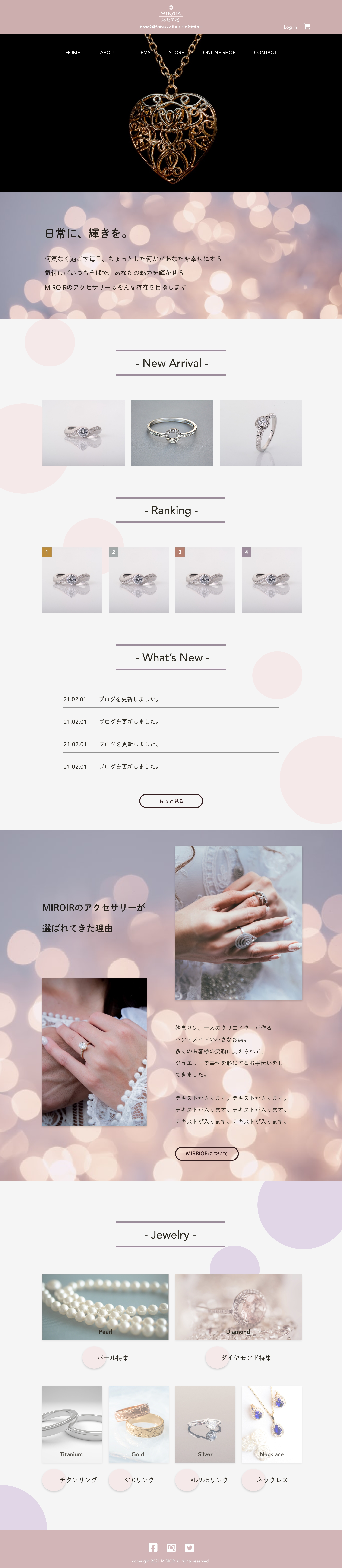 デモ制作のために制作したデザイン。架空のジュエリー通販サイトです。