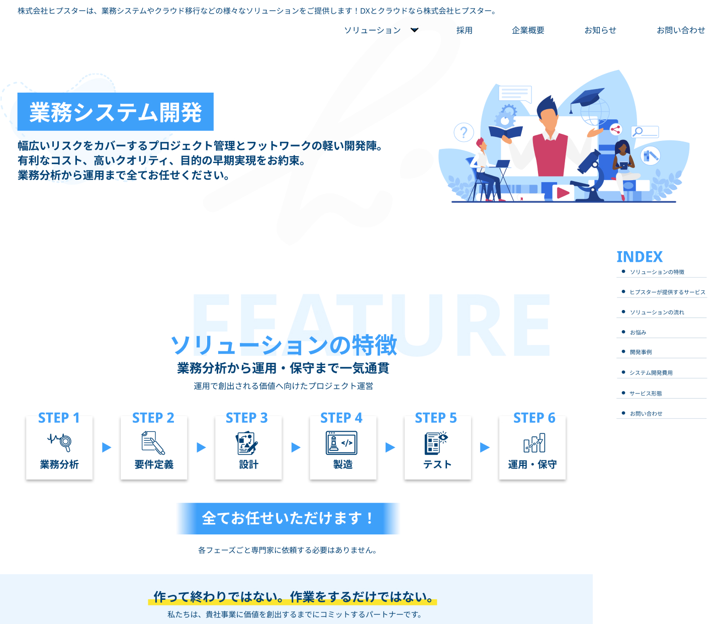現存するwebサイト内のソリューションメニュー「業務システム開発ページ」リニューアル案件。