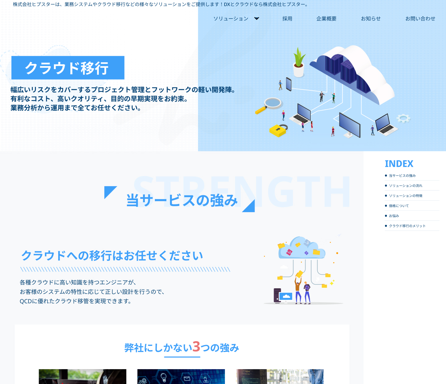 現存するwebサイト内のソリューションメニュー「クラウド移行ページ」リニューアル案件。