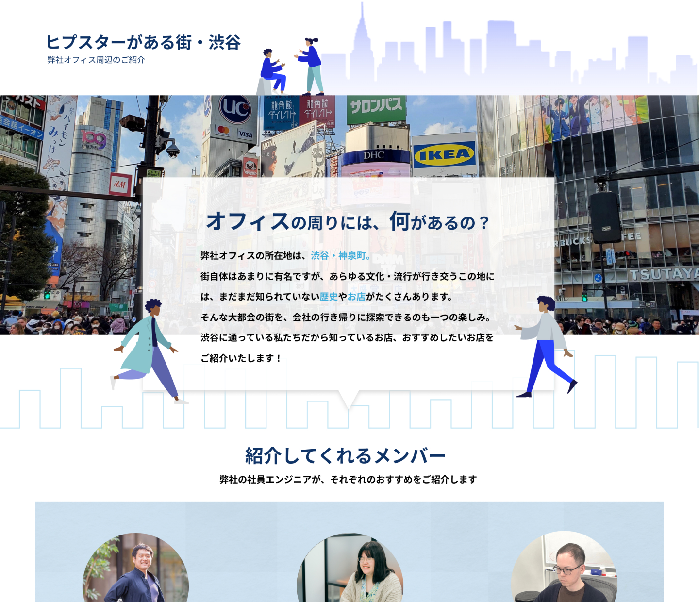 クライアントのオフィスの最寄り駅は神泉駅で渋谷駅からは遠いのですが、実際には便利な渋谷駅から通う方がほとんどのため、渋谷駅からのアクセスを考慮し、「渋谷の街を歩いてみると楽しいよ」ということが伝わるような飲食店紹介ページを作りたいとのご要望でした。