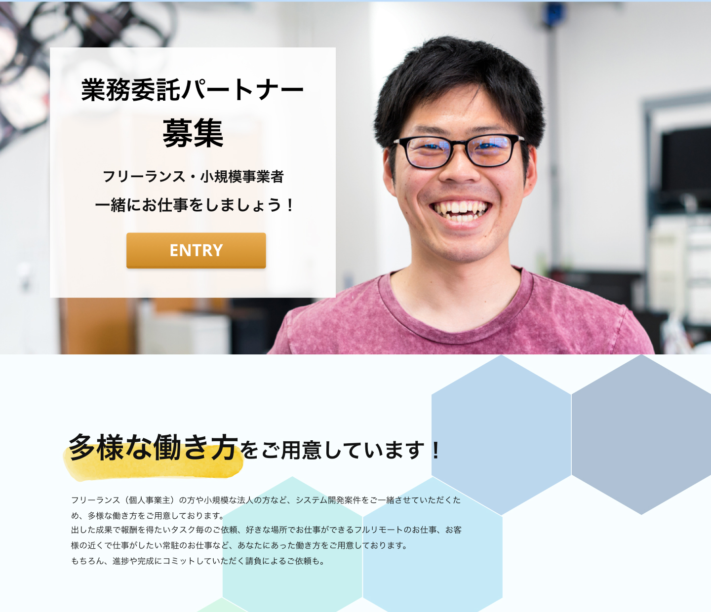 現存するwebサイトに、「業務委託採用ページ」を新規制作して追加する案件。