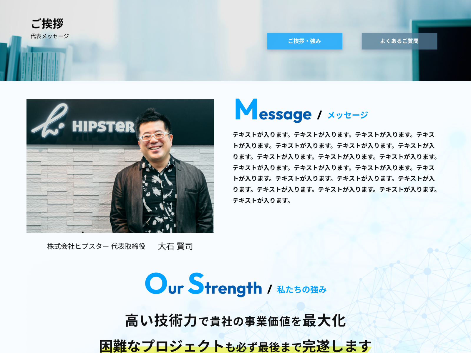 株式会社ヒプスター 公式Webサイト - ご挨拶ページ